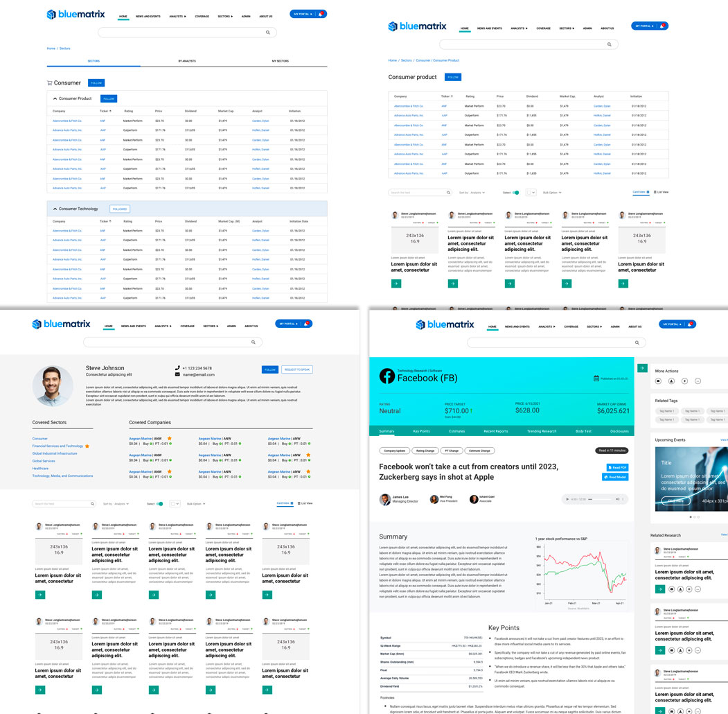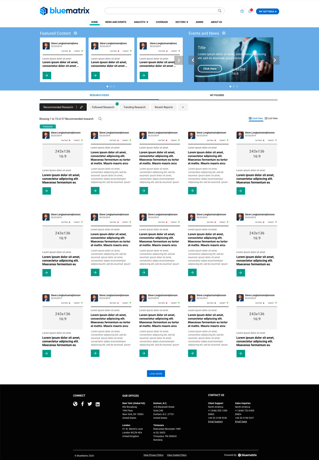 The purpose of this project was to create a new Portal, replacing old Library tool. The BlueMatrix Portal is designed to offer our clients powerful tools to manage content and the look and feel of the portal. The portal is configurable by our clients, removing the need for continuous development.